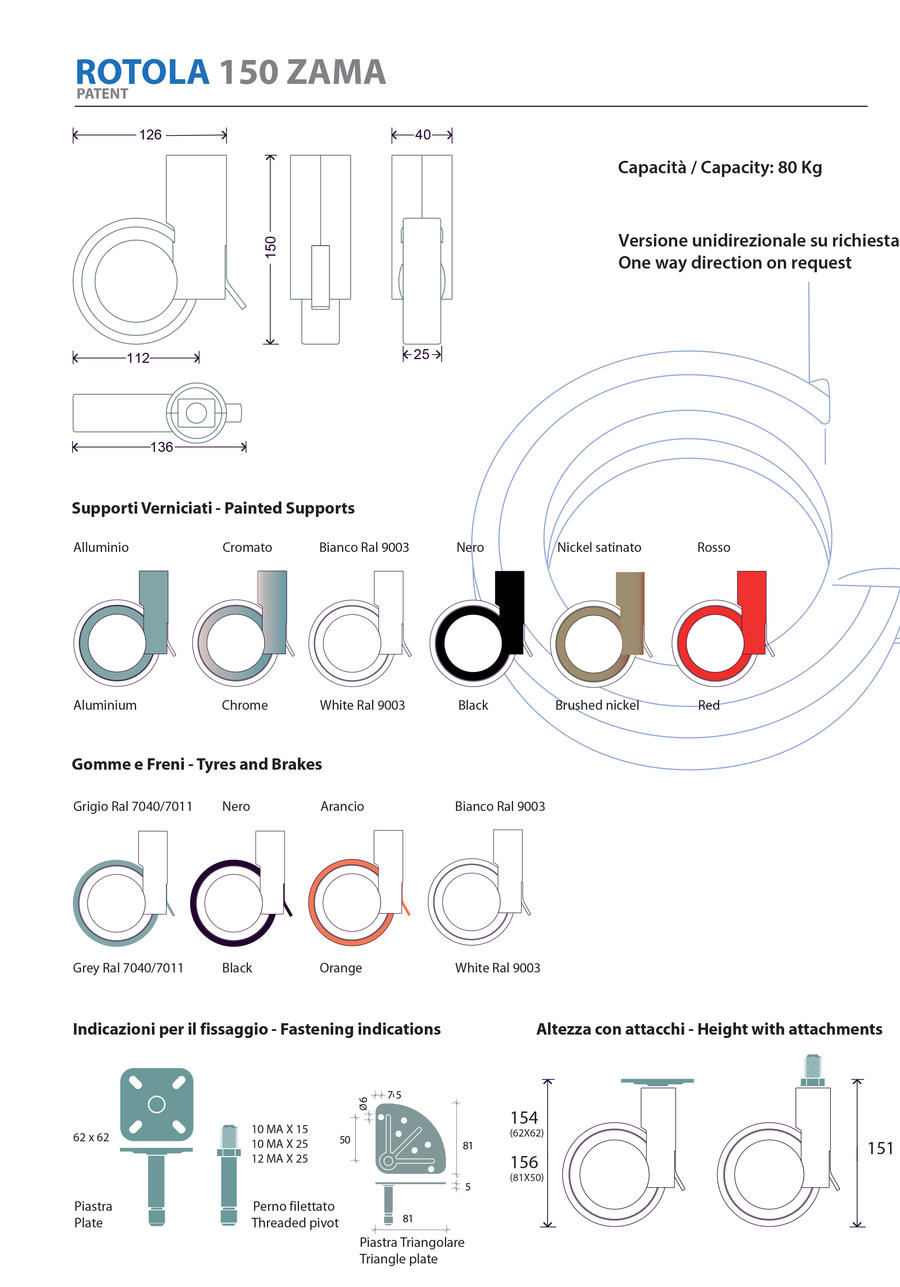 ROTOLA H.150 - Zamak Aluminium Support Grey GN111 Tyre With Grey GN111 Brake