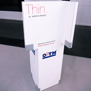Thin is the last creation built-in castor for panels. Barely born, it is already considered by the international press a new goal in the castor’s evolution. Its unique design appears particularly striking due to the total lack of exposed fastening screws and to a break pedal that ensures perfect blocking in any position thanks to the patent of a new brake disc. Made in zamak material, it's suited for panels with thicknesses of 25, 28, 30 mm and more. The possibility of installing bearings inside the castor ensures smoother rolling on any surface. Installed on a panel, Thin almost disappears by mimesis, perfectly attuned to the piece of furniture housing it. Thin is patented and protected by national and international patents, and is also Catas certified.