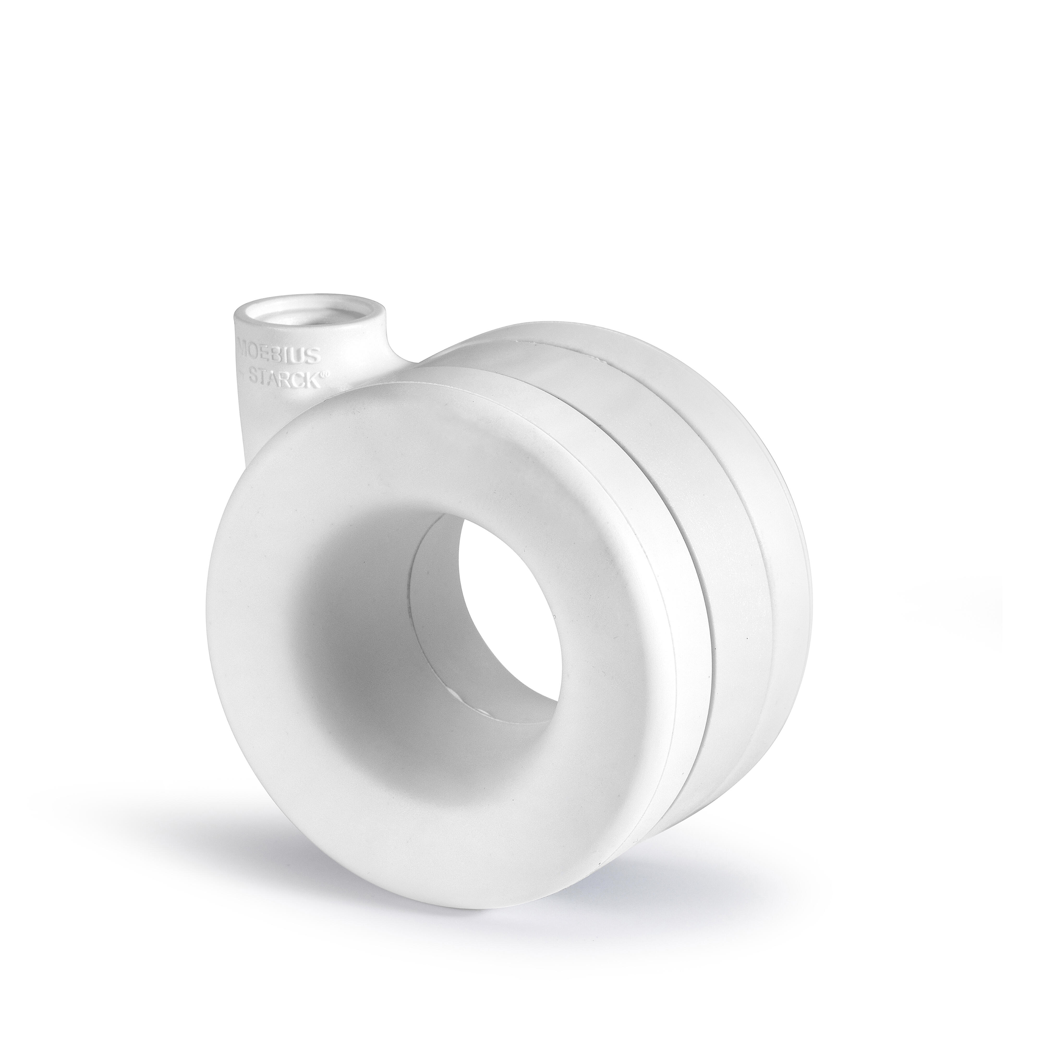 La ruota Moebius, disegnata dal designer francese Philippe Starck, prende il nome e l’ispirazione dal nastro senza fine scoperto dal matematico tedesco August Ferdinand Möbius. Le superfici interna ed esterna si compenetrano in un movimento continuo e fluido grazie all’assenza del mozzo centrale. Il movimento è suggerito prima ancora che realizzato e l’idea di infinito si trasforma in un concetto concreto. Moebius by Starck è per sua natura rivoluzionaria, poiché è l’unica ruota ad anelli che non necessita di un mozzo centrale per funzionare perfettamente. Quando ruota, è l’insieme degli elementi a suggerire l’idea di movimento. Su una ruota tradizionale solo il rivestimento in gomma ruota attorno al mozzo fisso centrale, assente nella ruota Moebius. Non è soltanto il design all’origine del carattere innovativo della ruota Moebius by Starck, la cui fluidità percepibile fra l’interno e l’esterno crea un continuum metafora del movimento assoluto e ininterrotto, ma anche la tecnica di fabbricazione rigorosamente fedele agli studi e agli stampi, al rispetto delle temperature, a tempi e procedimenti ingegneristici di straordinaria esattezza. La realizzazione della ruota da parte di Philippe Starck ha infatti richiesto oltre due anni di ricerche e di sviluppo per superare le difficoltà inedite legate all’assenza del mozzo centrale. La fabbricazione di una ruota dotata di un mozzo invisibile è unica nel suo genere e richiede l’adozione di soluzioni tecniche e industriali nuove per poterne garantire una produzione su vasta scala che associ la migliore qualità possibile a un prezzo adeguato.