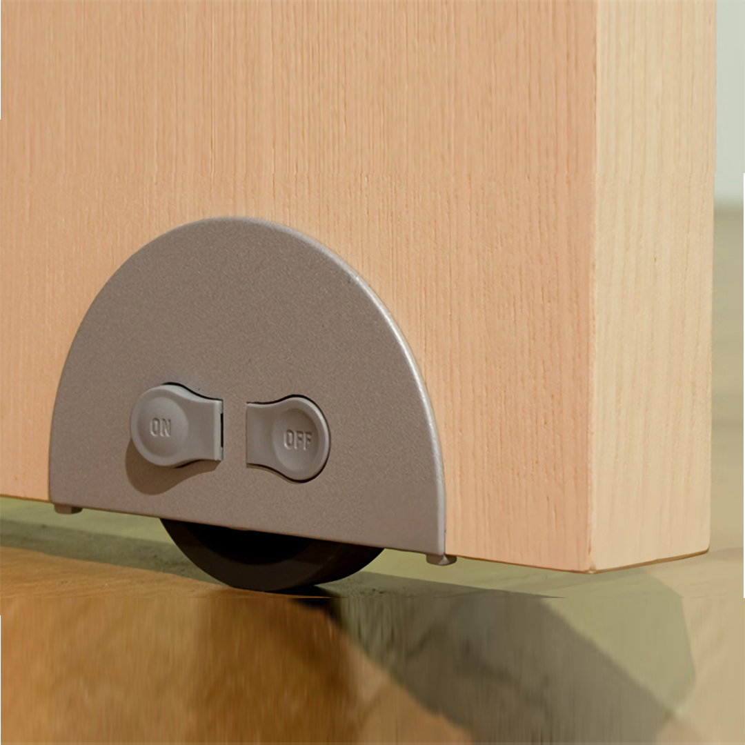 On-Off è una tipologia di ruota ad incasso unidirezionale, unica sul mercato. Presenta una forma a semicerchio costituita da due gusci stampati in zama pressofusa che racchiudono all’ interno la ruota in gomma poliuretanica antimacchia, studiata accuratamente per essere posizionata sotto pannelli di letti di differenti spessori: 18,22,25,28,30, cassettiere o complementi d’ arredo. Presenta certificazioni internazionali di brevetti e certificazioni di normative Catas.